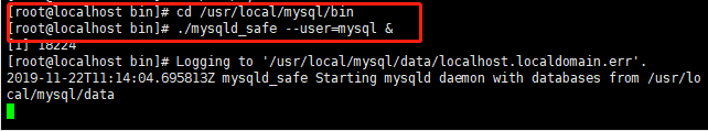 cd /usr/local/mysql/bin./mysqld_safe --user=mysql &