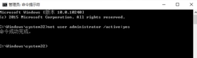 接下來,我們在命令行窗口中輸入"net user administrator /active:yes",然后按下回車鍵。