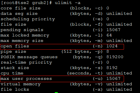 這里標(biāo)記了兩個最為重要的參數(shù),一個叫open files,另一個叫max user processes。