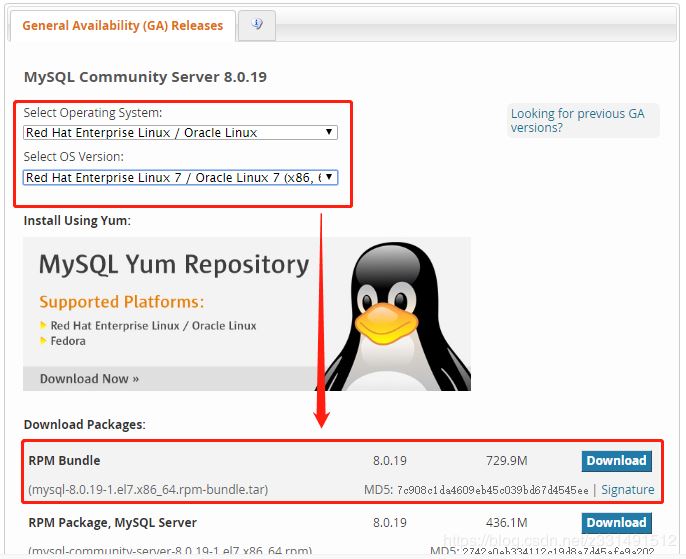 在打開的頁面這樣選擇(CentOS 是基于紅帽的,所以這樣選擇),然后下載: