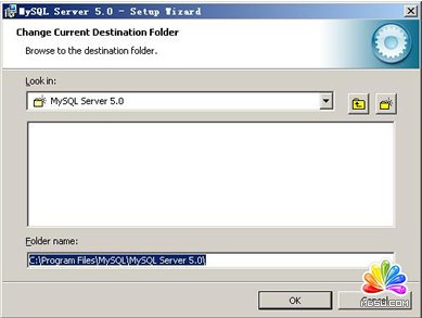 填上安裝目錄,我的是“F:ServerMySQLMySQL Server 5.0”,也建議不要放在與操作系統同一分區,這樣可以防止系統備份還原的時候,數據被清空。按“OK”繼續。