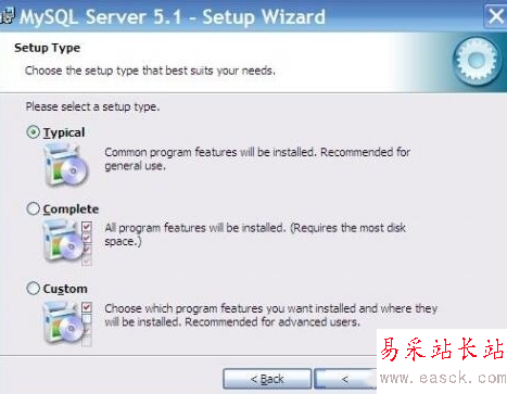 選擇安裝類型,有“Typical(默認)”、“Complete(完全)”、“Custom(用戶自定義)”三個選項,我們選擇“Custom”,有更多的選項,也方便熟悉安裝過程。