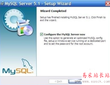 現在軟件安裝完成了,出現上面的界面,這里有一個很好的功能,mysql 配置向導,不用向以前一樣自己手動亂七八糟的配置my.ini 了,將“Configure the Mysql Server now”前面的勾打上,點“Finish”結束就行了。接下來就是打開mysq配置向導后,自己去配置相關的參數了。
