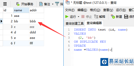 VALUES(字段名)表示獲取當(dāng)前語(yǔ)句insert的列值,VALUES(name)表示的就是'bb'