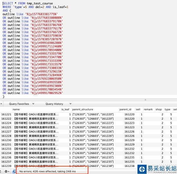 有一個(gè)表tmp_test_course大概有10萬條記錄,然后有個(gè)json字段叫outline,存了一對多關(guān)系(保存了多個(gè)編碼,例如jy1577683381775)
