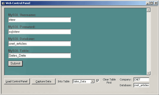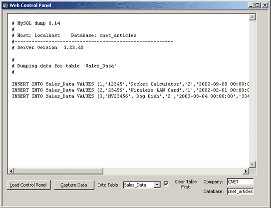 以上就是過程的全部。用戶必須通過網絡接口來運行主機上的數據庫查詢。當mysql存放處顯示在窗體瀏覽器上(如圖d),點擊獲取數據按鈕就可以獲取數據并存放在access數據表中。程序也會檢測數據存放處是否是基于一定格式的mysql,并確保是正確的數據庫和數據表。如果這些規則滿足,就會執行程序中的insert命令把數據添加到目標數據表,此時會彈出一個消息對話框以顯示這一過程。如果有錯誤產生則返回到窗體。listing a包含了完整的代碼。