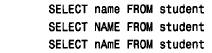 ■ sql 關鍵字和函數名。關鍵字與函數名是不區分大小寫的。可按任意的大小寫字符給出。下面的三條語句是等價的: