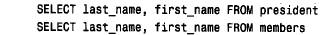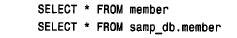 其中member 為數據庫samp_db 中的一個表。要引用一個列,有三種選擇,它們分別為:完全限定、部分限定和非限定。完全限定名(如db _ name . tbl _ name . col _ name)是完全地指定。部分限定名(如tbl_name. col _ name)引用指定表中的列。非限定名(如col _ name)引用由環境上下文給出的表中的列。下面兩個查詢使用了相同的列名,但是from 子句提供的上下文指定了從哪個表中選擇列:
