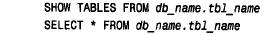 其中,tbl_name 為要引用的表名。另一種選擇是由表名自身來引用缺省(當前)數據庫中的一個表。如果samp_db 為缺省數據庫中的一個表,下面的兩個語句是等價的: