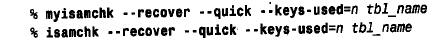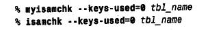 對具有.myi 擴展名的索引文件的myisam 表使用myisamchk,對具有.ism 擴展名的索引文件的isam 表使用isamchk。在向表中裝入數據后,按如下激活索引: