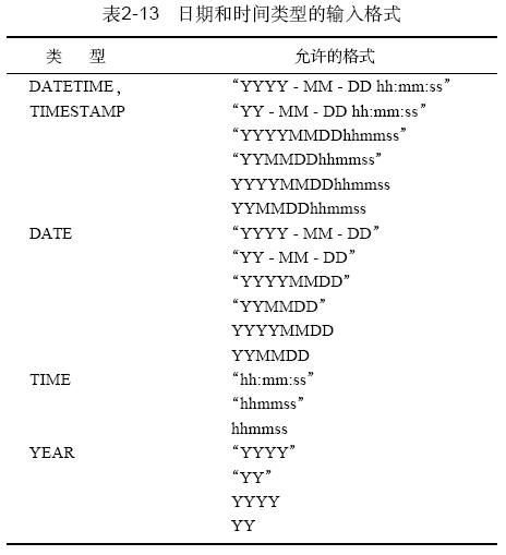 請注意,有前導零的值根據它們被指定為串或數有不同的解釋。串“ 0 0 12 3 1”將視為一個六位數字的值并解釋為date 的“2 0 0 0 - 12 - 3 1”和datetime 的“2000-12-3100:00:00”。而數0 0 12 3 1被認為12 3 1,這樣的解釋就有問題了。這種情形最好使用串值,或者如果要使用數值的話,應該用完全限定的值(即, date 用2 0 0 0 12 3 1,datetime 用2 0 0 0 12 3 10 0 0 0)。通常,在date、datetime 和t i m e s tamp 類型之間可以自由地賦值,但是應該記住以下一些限制: