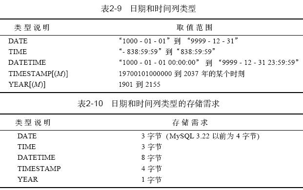 mysql提供了幾種時間值的列類型,它們分別是: date、date time、time、times tamp 和year。表2-9 給出了mysql為定義存儲日期和時間值所提供的這些類型,并給出了每種類型的合法取值范圍。year 類型是在mysql3.22版本中引入的。其他類型在所有mysql版本中都可用。每種時間類型的存儲需求見表2 - 10。每個日期和時間類型都有一個“零”值,在插入該類型的一個非法值時替換成此值,見表2 - 11。這個值也是定義為not null 的日期和時間列的缺省值。
