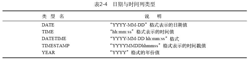 日期與時間列類型在表2 - 4中示出。對于臨時值, mysql提供了日期(有或沒有時間)、時間和時間戳(一種允許跟蹤對記錄何時進行最后更改的特殊類型)的類型。而且還提供了一種在不需要完整的日期時有效地表示年份的類型。
