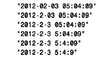 符的串格式,不一定非要用日期的“ -”符號和時間的“ :”符號來分隔,任何標點符號都可用作分隔符,因為值的解釋取決于上下文,而不是取決于分隔符。例如,雖然時間一般是用分隔符“:”指定的,但mysql并不會在一個需要日期的上下文中將含有“ :”號的值理解成時間。此外,對于有分隔符的串格式,不需要為小于10 的月、日、小時、分鐘或秒值指定兩個數值。下列值是完全等同的: