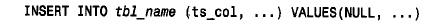 ■ 使用t i m e s tamp 列。在最初建立一個記錄時,設置該列為null,將其初始化為當前日期和時間: