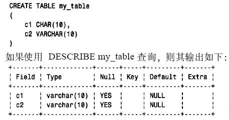 ■ 因為在行可變長時定長行的性能優點完全失去。所以為了節省存儲空間,在這種情況下最好也將定長列轉換為可變長列。這表示,如果表中有varchar 列,那么表中不可能同時有char 列;mysql會自動地將它們轉換為varchar 列。例如創建如下一個表: