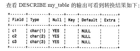 請注意,varchar 列的出現使mysql將c1也轉換成了varchar 類型。如果試圖用alter table 將c1轉換為char,將不起作用。將varchar 列轉換為char 的惟一辦法是同時轉換表中所有varchar 列: