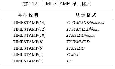 times tamp 列的定義可包含對最大顯示寬度m 的說明。表2 - 12給出了所允許的m 值的顯示格式。如果times tamp 定義中省略了m 或者其值為0或大于14,則該列按times tamp(14) 處理。取值范圍從1到13的m 奇數值作為下一個更大的偶數值處理。t i m e s tamp 列的顯示寬度與存儲大小或存儲在內部的值無關。times tamp 值總是以4 字節存放并按14 位精度進行計算,與顯示寬度無關。為了明白這一點,按如下定義一個表,然后插入一些行,進行檢索: