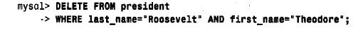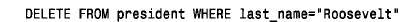 是的,感覺上它能刪除您頭腦中打算刪除的記錄。但是,錯了,實際上它也能刪除franklin roosevelt 的記錄。如果首先用where 子句檢查一下就安全了,如下所示: