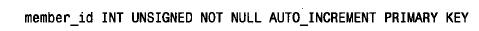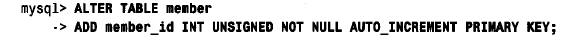 回顧我們創建歷史同盟member 表時缺了一個會員號列,因此我們可以進行一次alte rtable 語句的練習。需要用alter table,可以對表重新命名,增加或刪除列,更改列的類型等等。這里給出的例子是關于怎樣增加新列的。有關alter table 功能的詳細內容,請參閱第3章。增加會員號列到member 表的主要考慮是,其值應該是唯一的,以免各會員條目混淆。auto_increment 列在此是很有用的,因為我們可以在增加新的號碼時令mysql自動地生成唯一的號碼。在create table 語句中,這樣一個列的說明如下: