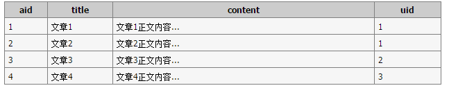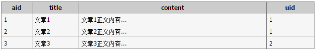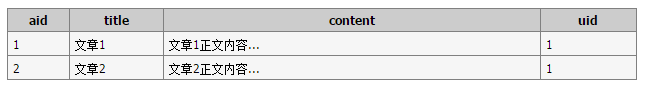 該例子要找出用戶發(fā)表了 2 篇文章的所有文章記錄。對(duì)應(yīng)的兩個(gè)數(shù)據(jù)表如下: