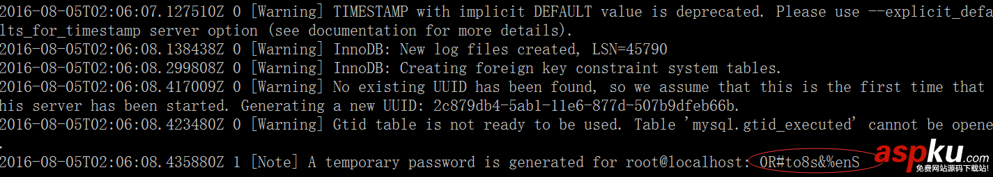 進行初始化,此時會生成root的初始密碼如下圖所示: