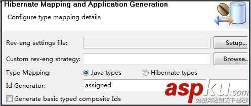 Id Generator: id生成器,一般我們選擇assigned,就是用程序生成