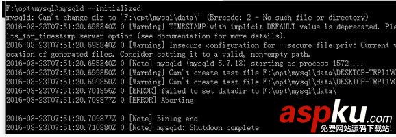 這是有沒mysql目錄沒有data目錄,去mysql目錄下創(chuàng)建一個data目錄。f:opt/data