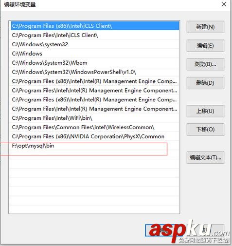 5.4、為了方便將mysql 的目錄放到path 環(huán)境變量中F:/opt/mysql/bin