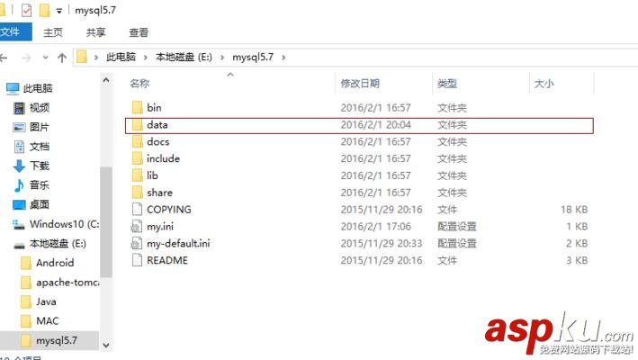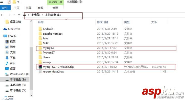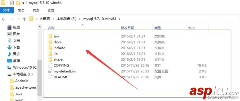 win10系統 64bit mysql-5.7.10-winx64.zip