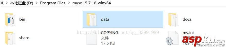 下載完后,選擇地址解壓壓縮包,我解壓的位置為:D:/Program Files/mysql-5.7.18-winx64