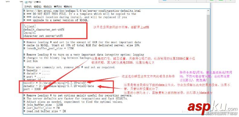 my.ini里面的內容這樣修改,#號開頭的是注釋,不用管: