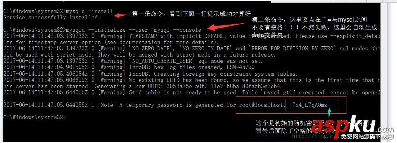 PS:第一句語句執行完畢可以在服務里面看到添加成功(開始鍵(左ctrl右邊的那個鍵)+R,輸入services.msc里面可以看到MYSQL的一欄,自己看)