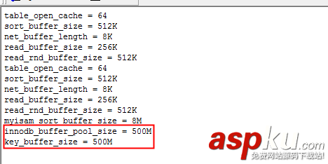 那么 vi /etc/my.cnf,調整 innodb_buffer_pool_size、key_buffer_size 各為 500M