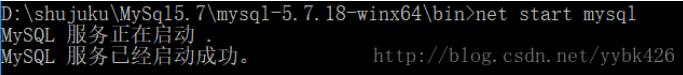 10.如果是刪除mysql,cmd中進入D:/shujuku/MySql5.7/mysql-5.7.18-winx64/bin中,如果服務開啟中,先關閉MySQL服務:netstop mysql,然后在運行:mysqld –remove。