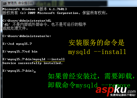 如果不需要mysql里,只需要運行mysqld –remove即可移除,如下圖