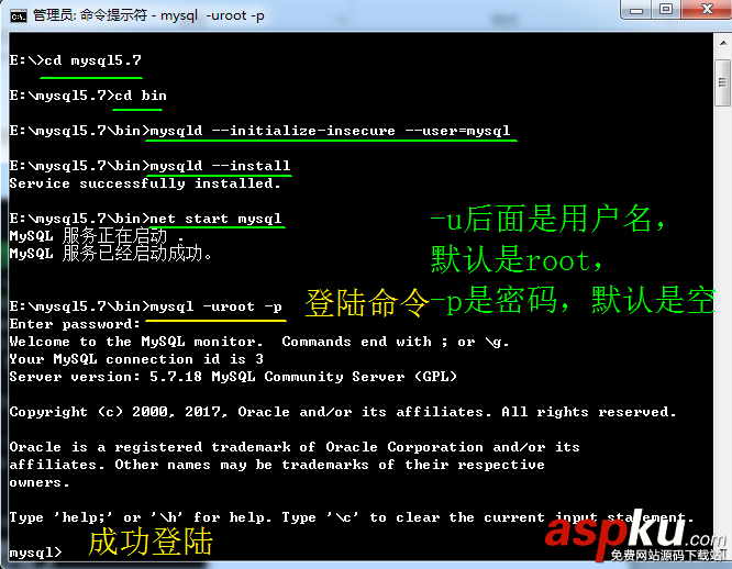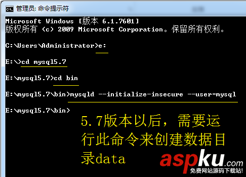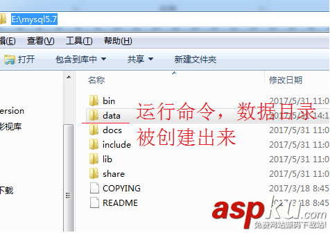 2、對于新版mysql5.7沒有了data目錄,我們需要運行命令創建