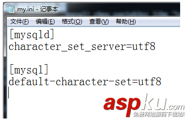 在[mysqld]節點下,配置服務端編碼,添加2項內容
