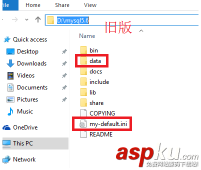對比一下下圖5.6以前的版本,少data目錄(存放數據)和my-default.ini文件(配置信息)