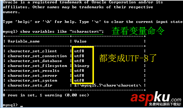 3、運行命令show variables like "%character%"查看系統字符集變量,如下圖:
