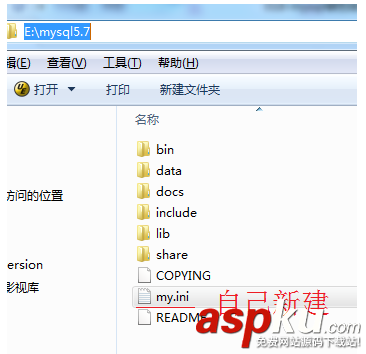 2、在mysql5.7的根目錄下,新建my.ini文件,(5.7后沒了這文件,自己新建),如下圖: