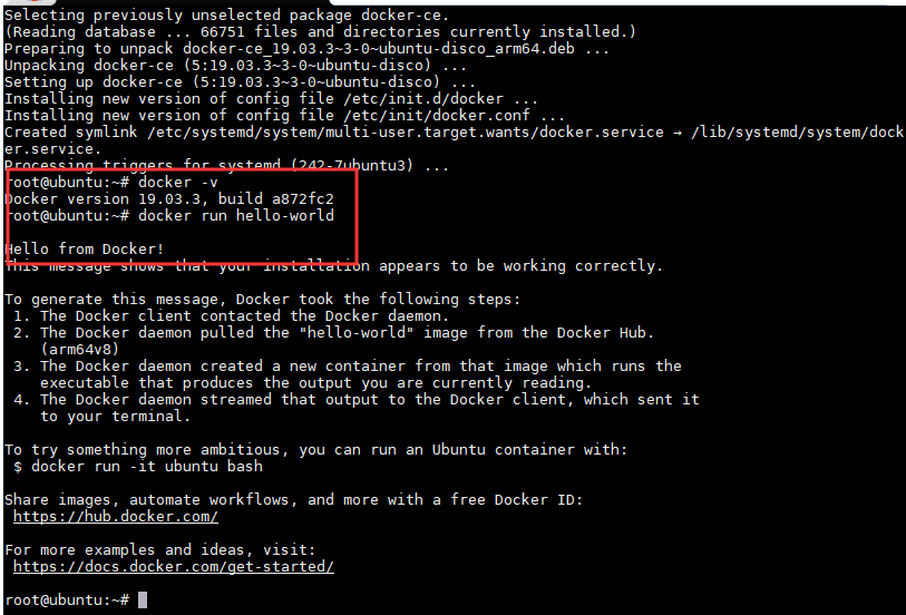 sudo dpkg -i "containerd.io_1.2.10-3_arm64.deb"sudo dpkg -i "docker-ce-cli_19.03.3~3-0~ubuntu-disco_arm64.deb"sudo dpkg -i "docker-ce_19.03.3~3-0~ubuntu-disco_arm64.deb"