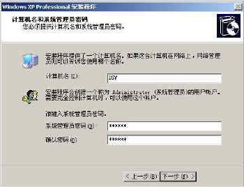 在“計算機名和系統管理員密碼”對話框中要求你填入計算機名和系統管理員密碼,如果計算機不在網絡中可自行設定計算機名和密碼(圖8)。