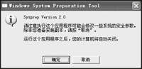 完成了上述操作之后,接下來就需要對系統進行重新封裝了。這時在剛才從Windows XP安裝光盤中解壓縮文件夾中雙擊sysprep.exe文件,首先將看見圖4所示的提示窗口(如圖4),點擊“確定”之后準備封裝。