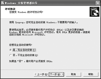 第四步 在圖2所示的窗口中可以選擇是否完全自動安裝(如圖2),一般情況下建議選擇“是,完全自動安裝”,否則用這個封裝包光盤安裝系統時候還是比較麻煩的。