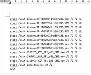 第七步:保存圖3所示的內(nèi)容,然后將“l(fā)ist.txt”文件的擴(kuò)展名改為“bat”即可制作了安裝補(bǔ)丁程序的批處理程序。
