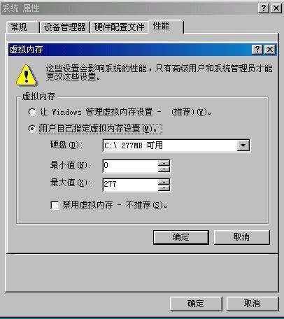 根據(jù)一般的設(shè)置方法,虛擬內(nèi)存交換文件最小值、最大值同時都可設(shè)為內(nèi)存容量的1.5倍,但如果內(nèi)存本身容量比較大,比如內(nèi)存是512MB,那么它占用的空間也是很可觀的。所以我們可以這樣設(shè)定虛擬內(nèi)存的基本數(shù)值:內(nèi)存容量在256MB以下,就設(shè)置為1.5倍;在512MB以上,設(shè)置為內(nèi)存容量的一半;介于256MB與512MB之間的設(shè)為與內(nèi)存容量相同值。