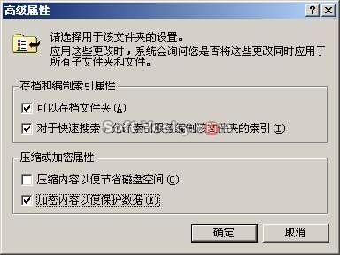 可以鎖住Win 2000的NTFS分區上文件和文件夾,對它們加密處理,方法是:在“Win 2000 資源管理器”中,鼠標右擊要加密的文件或文件夾,然后單擊“屬性”/“常規”/“高級”,選定“加密內容以便保護數據”復選框即可(如圖11)。但只能對Win 2000的NTFS分區上文件和文件夾加密。