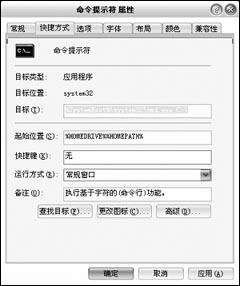彈開“開始→程序→附件”后,右鍵單擊“命令提示符”,選擇菜單“屬性”,在“快捷方式”標簽頁的“目標”,在原有字符后加一半角狀態(tài)空格,輸入路徑,單擊“確定”退出。以后通過這個快捷方式激活的“命令提示符”,默認路徑就是參數(shù)里的路徑。