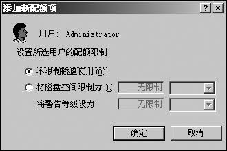 “不限制磁盤使用”單選項,選中該項,則用戶可以無限制地使用服務器磁盤空間。